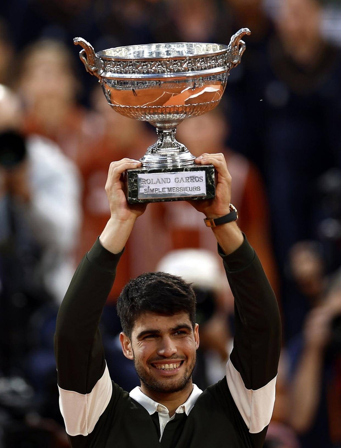生于2003年5月、2018年早早转入职业的阿尔卡拉斯,2022年不仅一鸣惊人,先后夺取迈阿密和马德里大师赛冠军,而且一飞冲天,夺取美网冠军,荣登世界第一;2023年,阿尔卡拉斯在温网决赛塵战五盘,逆转战胜了七届温网冠军、塞尔维亚天王德约科维奇,出人意料地夺取了温网冠军;2024年,阿尔卡拉斯攻陷罗兰-加洛斯,夺取法网冠军,随后背靠背夺取温网冠军,卫冕成功。